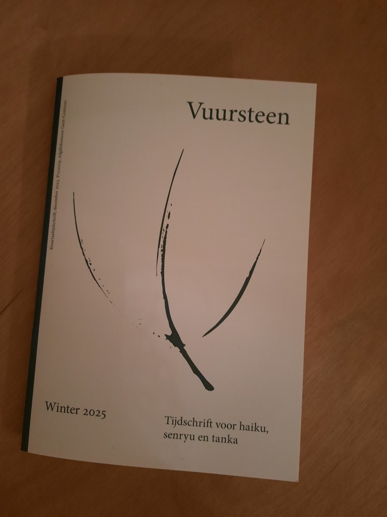 Het winternummer van Vuursteen bevat naast ingezonden werk ook artikels over senryu en kattenhaiku’s. Verder vind je ook een overzicht van bekroonde verzen, boekbesprekingen en de uitslag van de tanhaibunwedstrijd. Wie verzen wil insturen voor het zomernummer 2026, heeft tot 1 februari tijd. In 2026 bestaat Haiku-centrum Vlaanderen trouwens 50 (!) jaar, een gouden jubileum; daarover later meer.