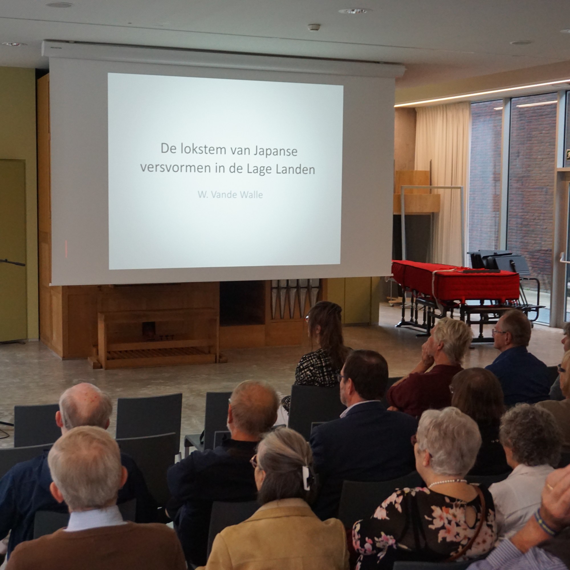 In de voormiddag was er de lezing ‘De lokstem van Japanse versvormen in de Lage Landen’ door Willy Vande Walle, voorzitter van Haiku-centrum Vlaanderen, die tevens een hommage bracht aan de onlangs overleden Karel Hellemans, pionier van H-cV.